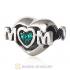 Sterling Silver European MOM Heart Bead with Aquamarine Austrian Crystal