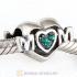 Sterling Silver European MOM Heart Bead with Olivine Austrian Crystal