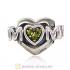 Sterling Silver European MOM Heart Bead with Peridot Austrian Crystal