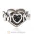 Sterling Silver European MOM Heart Bead with Black Diamond Austrian Crystal