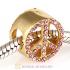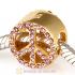 Gold Plated Sterling Silver Peace Button Beads with Rose Austrian Crystal