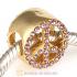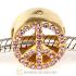 Gold Plated Sterling Silver Peace Button Beads with Rose Austrian Crystal
