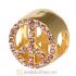 Gold Plated Sterling Silver Peace Button Beads with Light Peach Austrian Crystal