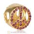 Gold Plated Sterling Silver Peace Button Beads with Siam Austrian Crystal