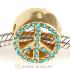 Gold Plated Sterling Silver Peace Button Beads with Emerald Austrian Crystal