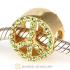 Gold Plated Sterling Silver Peace Button Beads with Olivine Austrian Crystal