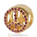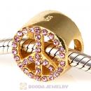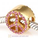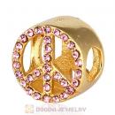 Gold Plated Sterling Silver Peace Button Beads with Rose Austrian Crystal