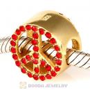 Gold Plated Sterling Silver Peace Button Beads with Light Siam Austrian Crystal
