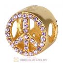 Gold Plated Sterling Silver Peace Button Beads with Light Rose Austrian Crystal