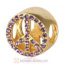 Gold Plated Sterling Silver Peace Button Beads with Amethyst Austrian Crystal