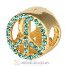Gold Plated Sterling Silver Peace Button Beads with Blue Zircon Austrian Crystal