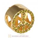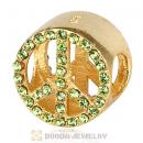 Gold Plated Sterling Silver Peace Button Beads with Olivine Austrian Crystal