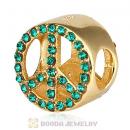 Gold Plated Sterling Silver Peace Button Beads with Emerald Austrian Crystal
