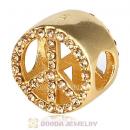 Gold Plated Sterling Silver Peace Button Beads with Crystal Austrian Crystal
