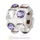 Sterling Silver Beads with Circle Amethyst Square Clear Austrian Crystal