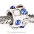 Sterling Silver Beads with Circle Aquamarine Square Clear Austrian Crystal