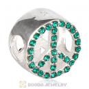 Sterling Silver Peace Button Beads with Emerald Austrian Crystal