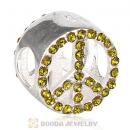 Sterling Silver Peace Button Beads with Olivine Austrian Crystal