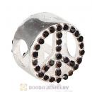 Sterling Silver Peace Button Beads with Black Diamond Austrian Crystal