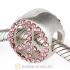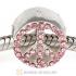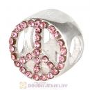 Sterling Silver Peace Button Beads with Rose Austrian Crystal