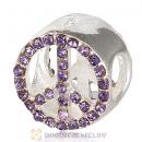 Sterling Silver Peace Button Beads with Violet Austrian Crystal