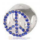 Sterling Silver Peace Button Beads with Sapphire Austrian Crystal