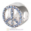 Sterling Silver Peace Button Beads with Light Sapphire Austrian Crystal