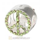 Sterling Silver Peace Button Beads with Peridot Austrian Crystal