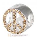 Sterling Silver Peace Button Beads with Light Peach Austrian Crystal