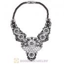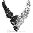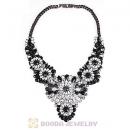 Luxury brand Black Diamond and Clear Crystal Flower Statement Necklaces Wholesale
