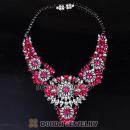 Luxury brand Hot Pink and Clear Crystal Flower Statement Necklaces Wholesale