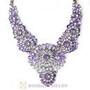 Luxury brand Purple and Clear Crystal Flower Statement Necklaces Wholesale