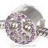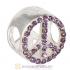 Sterling Silver Peace Button Beads with Violet Austrian Crystal