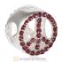 Sterling Silver Peace Button Beads with Light Siam Austrian Crystal