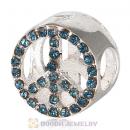 Sterling Silver Peace Button Beads with Blue Zircon Austrian Crystal