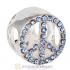 Sterling Silver Peace Button Beads with Sapphire Austrian Crystal