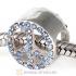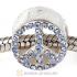 Sterling Silver Peace Button Beads with Blue Zircon Austrian Crystal