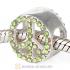 Sterling Silver Peace Button Beads with Olivine Austrian Crystal