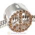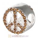 Sterling Silver Peace Button Beads with Light Peach Austrian Crystal
