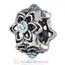 European Sterling Silver Dahlia Charm Beads with Aquamarine Austrian Crystal
