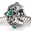European Sterling Silver Dahlia Charm Beads with Emerald Austrian Crystal