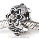 European Sterling Silver Dahlia Charm Beads with Black Diamond Austrian Crystal