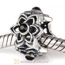 European Sterling Silver Dahlia Charm Beads with Black Diamond Austrian Crystal