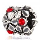 European Sterling Silver Dahlia Charm Beads with Light Siam Austrian Crystal