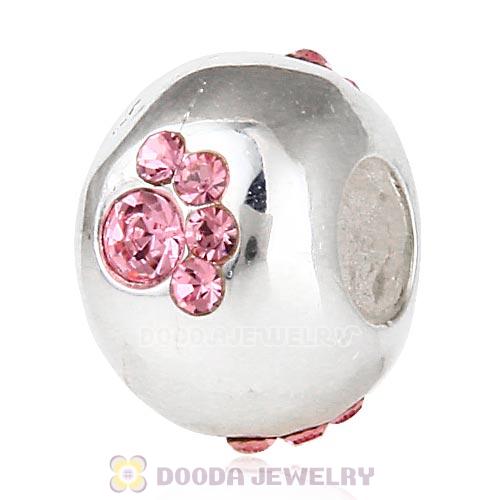 925 Sterling Silver Dog Paw Prints Beads With Rose Austrian Crystal