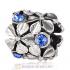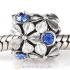 Sterling Silver Buttercup Flower European Beads with Aquamarine Austrian Crystal