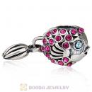 Sterling Silver Splish Splash Fish Charm with Fuchsia Austrian Crystal