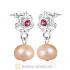Sterling Silver My Sweet Princess with Light Rose Crystal Dangle Pearl Earrings