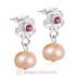 Sterling Silver My Sweet Princess with Light Siam Crystal Dangle Pearl Earrings