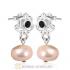 Sterling Silver My Sweet Princess with Light Rose Crystal Dangle Pearl Earrings